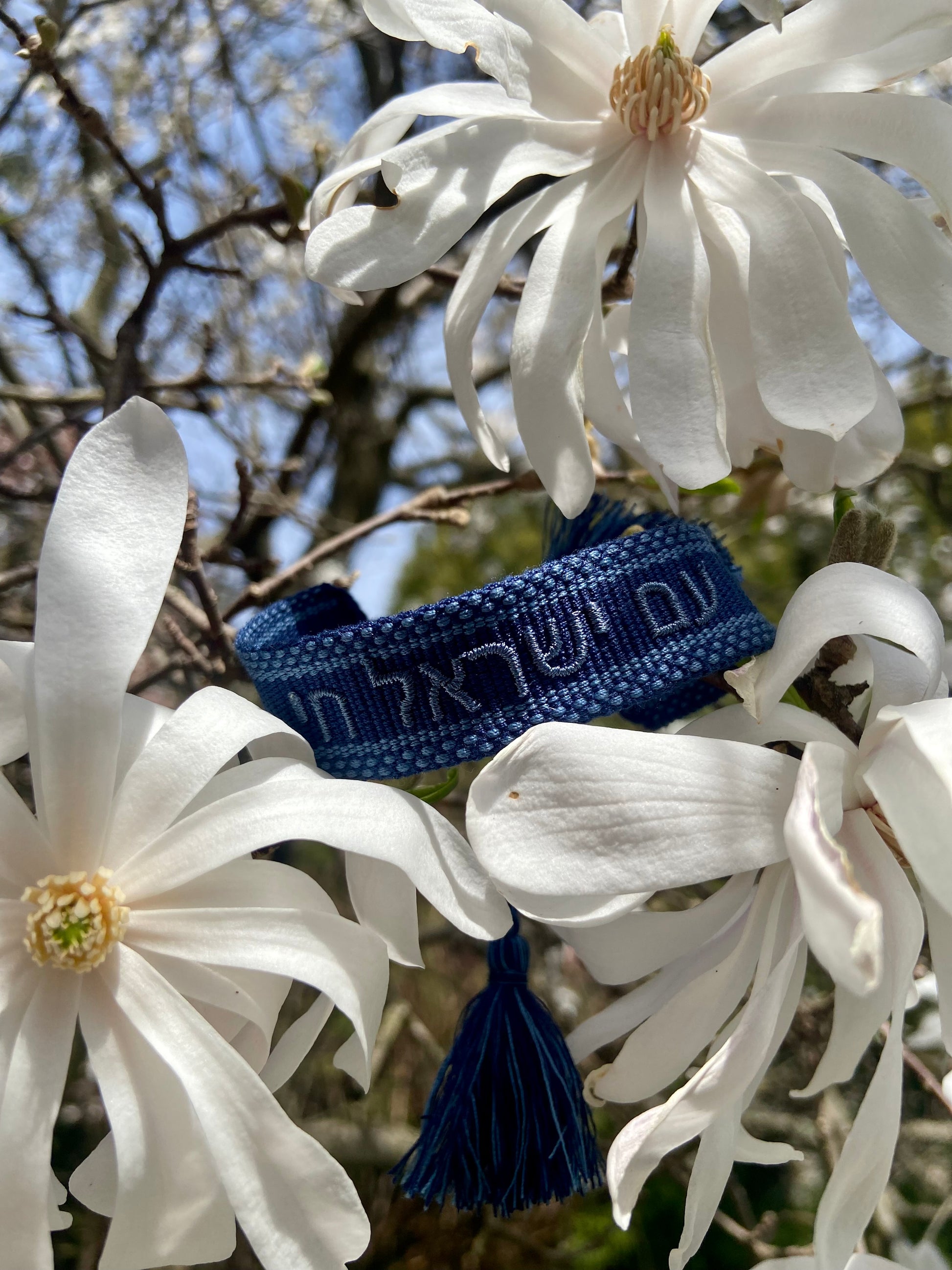 Celebrate Israel with this adjustable woven bracelet embroidered with Am Yisrael Chai. Made out of soft threads, this bracelet slips on and is easily adjusted by the tasseled slip knot
