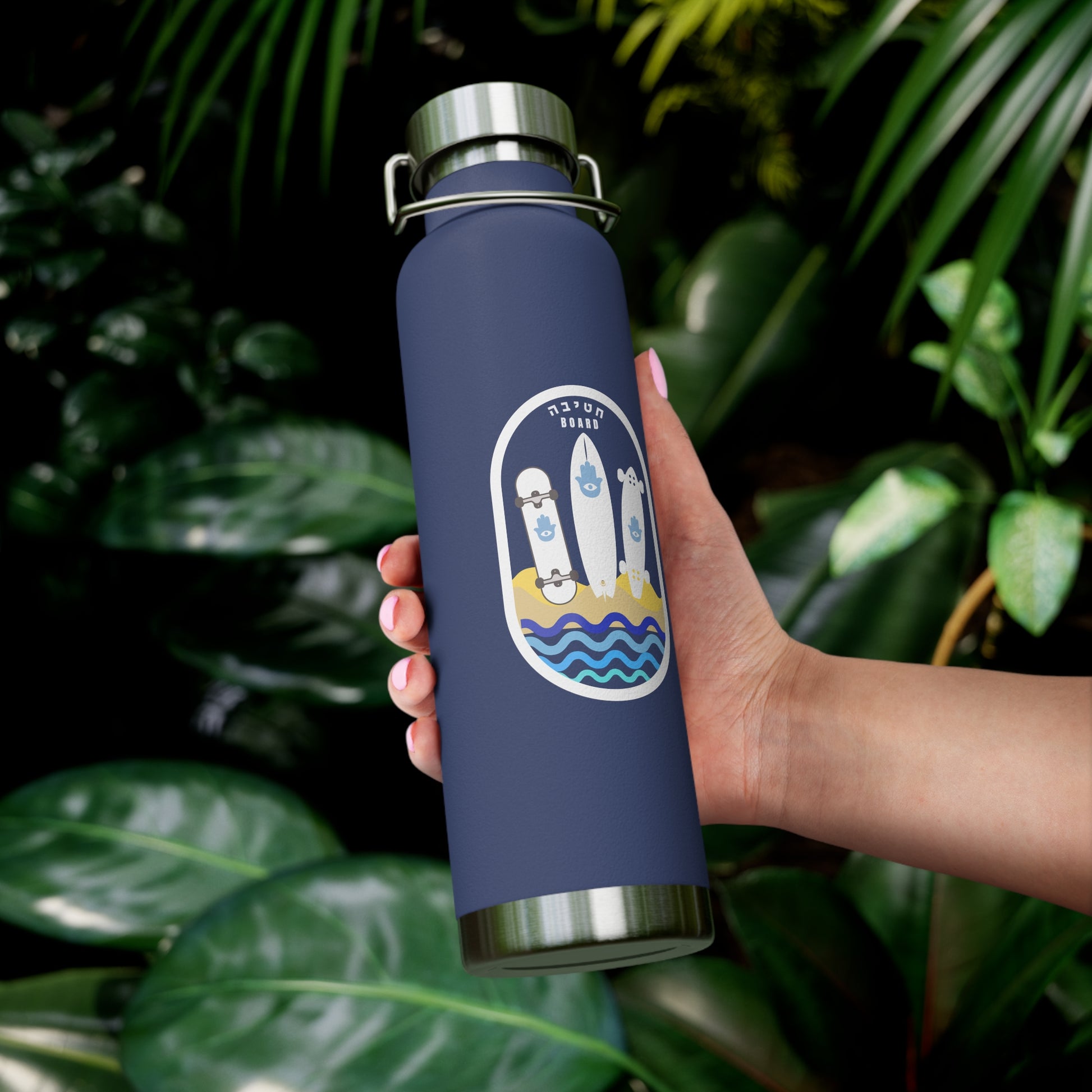 A tongue-in-cheek ode to those who would rather be on their board- be it surf, skate or snow. This bottle features the insignia of the most chill unofficial chativah/brigade in the IDF. Yalla you can come join us for our next board session.