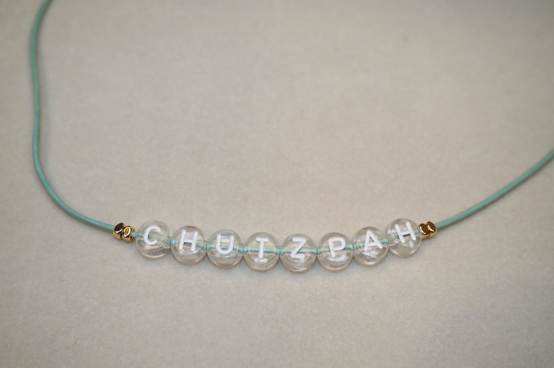 Nothing celebrates our Jewish pride quite like the word chutzpah. Now you can wear it on your neck as a reminder to add a little chutzpah to everything you do, or to your favorite chutzpahdik friend or family member.