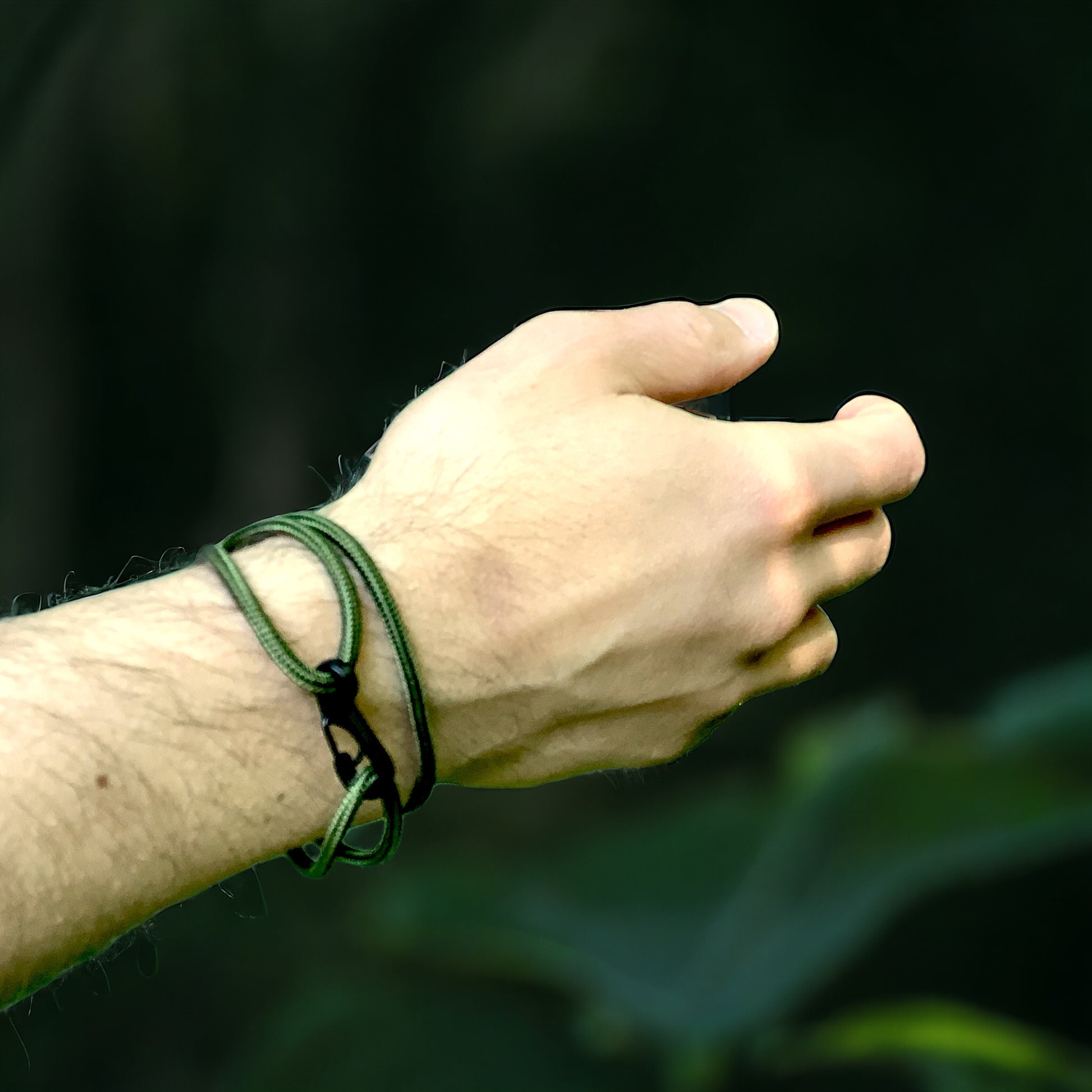 Made out of an extra long piece of paracord with two sliding knots, this bracelet can be worn many different ways.