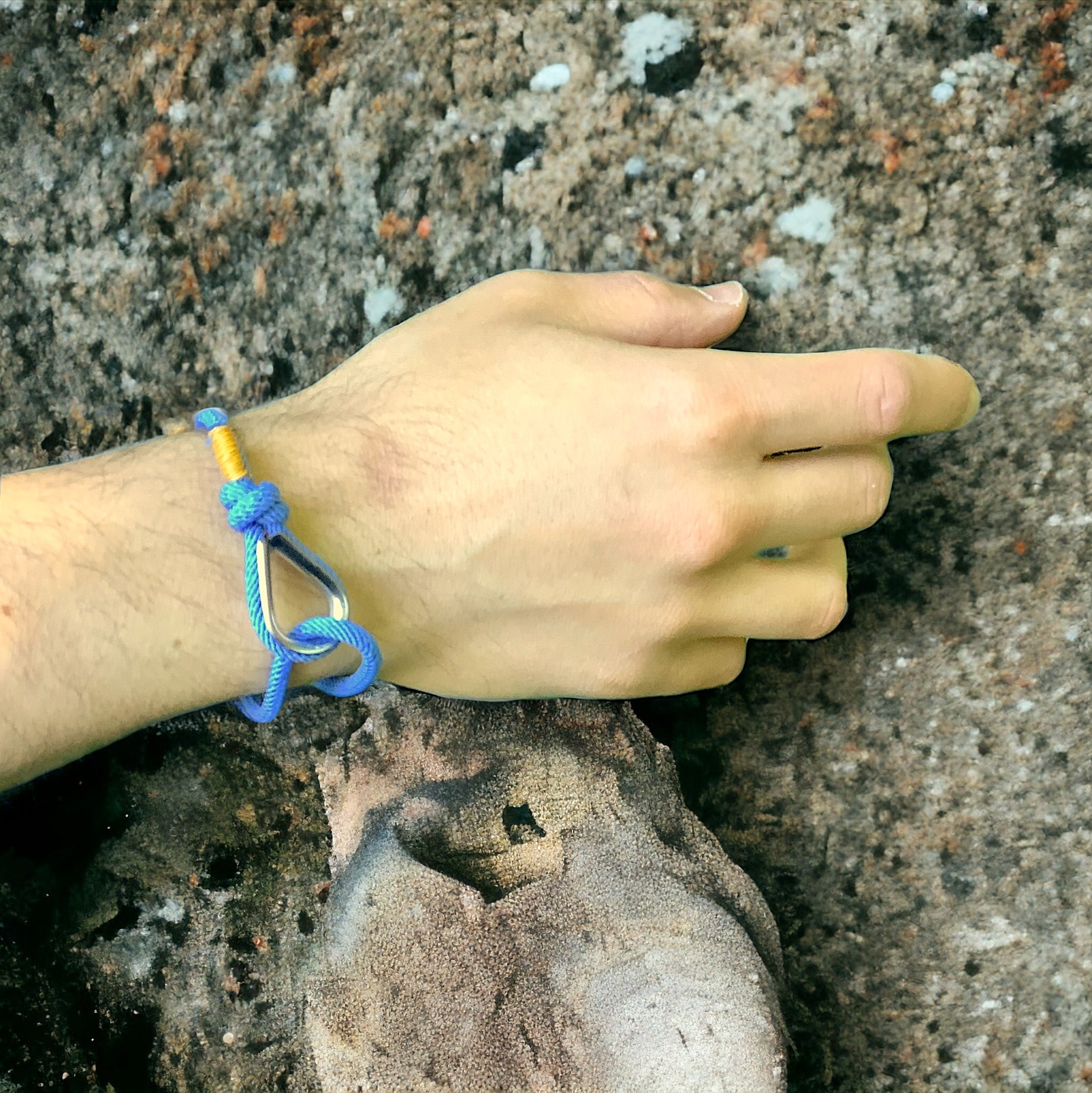 The combination of paracord and metal rope thimble are meant to evoke nautical work- a subtle way of showing support for our chayalim on the water/ Heil HaYam HaYisraeli.
