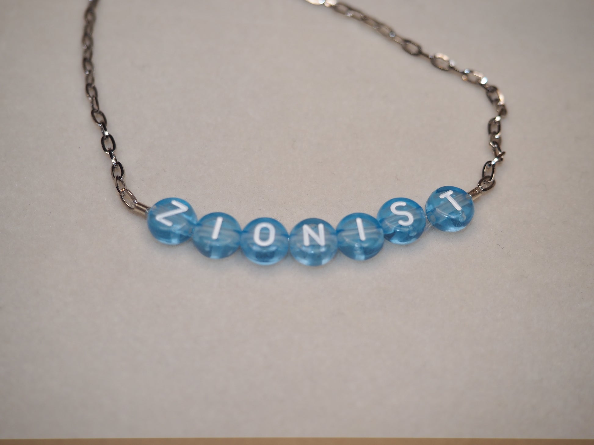 Crafted with a sleek tarnish-proof paperclip chain that’s as trendy as it is bold, this necklace features eye-catching letter beads that spell out “ZIONIST.” This piece is for those who wear their identity loud and proud—no room for subtlety here!